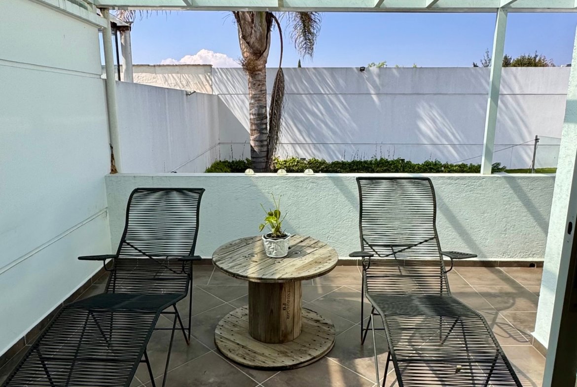 La casa se distingue por su excelente conexión entre espacios interiores y exteriores, ofreciendo una terraza cubierta que se integra al jardín privado, ideal para reuniones familiares, tardes de juego para los niños o momentos de descanso al aire libre sin importar la temporada. Los muros perimetrales fueron construidos a mayor altura, brindando una sensación de seguridad e intimidad poco común, perfecta para una vida familiar plena y sin interrupciones.