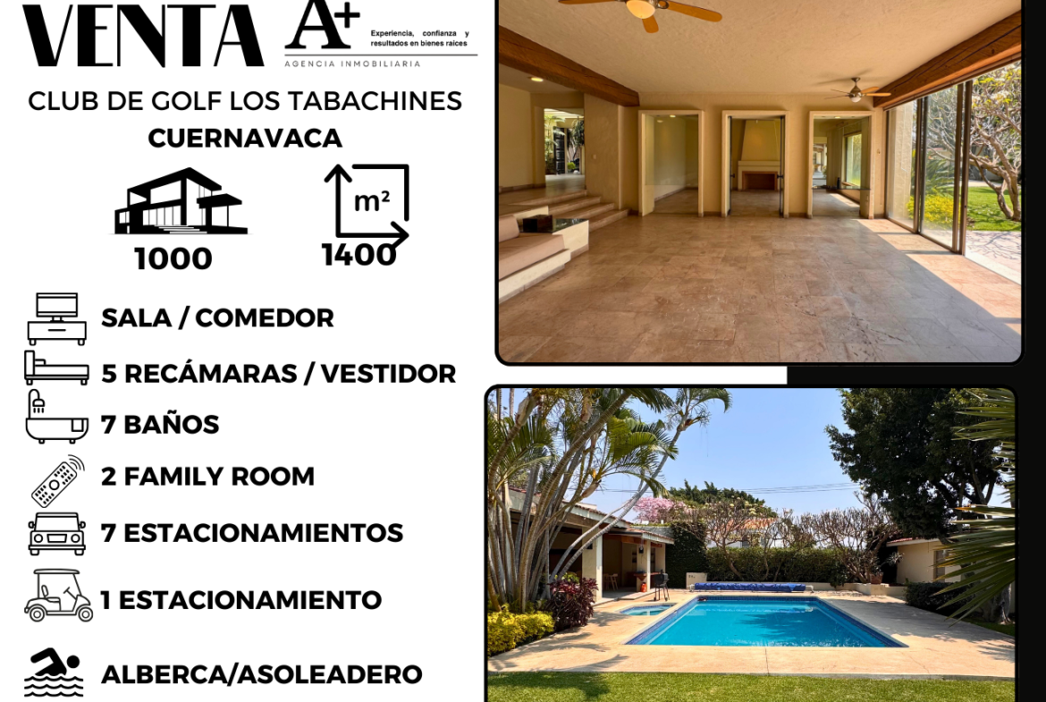 Residencia en venta dentro del exclusivo Club de Golf Los Tabachines en Cuernavaca, una de las zonas más privilegiadas por su clima, privacidad y entorno natural.