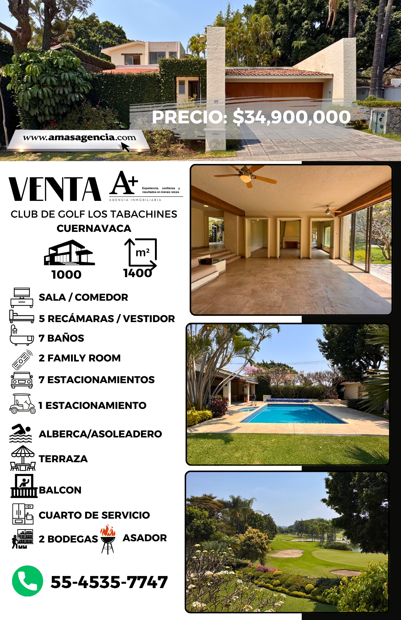 La propiedad se desarrolla sobre un amplio terreno de 1,400 m² con 1,000 m² de construcción, ofreciendo espacios generosos y una distribución ideal para disfrutar y recibir.