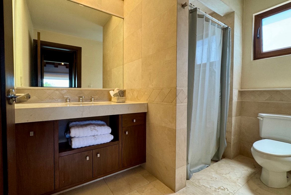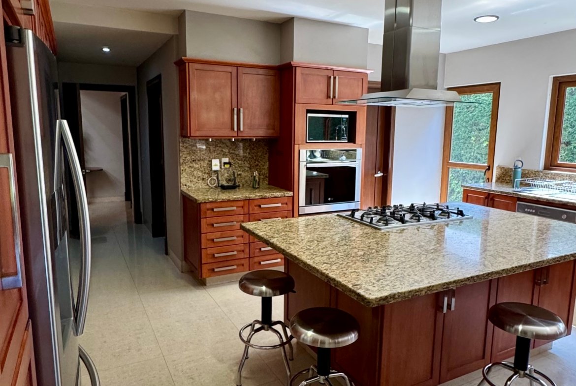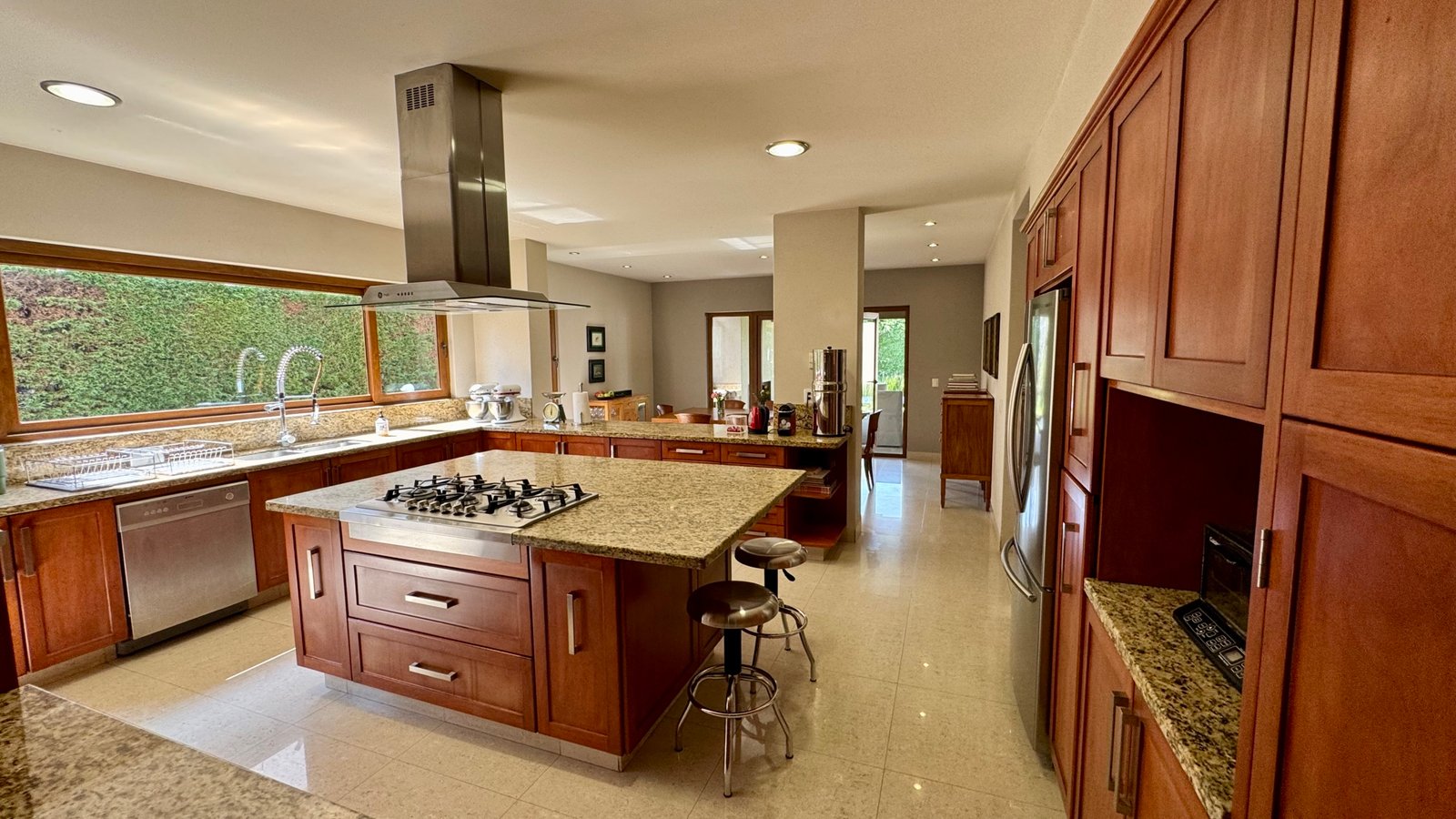 Cuenta con tres recámaras, dos áreas de family room, y una cocina amplia con isla central que se convierte en el corazón funcional de la casa. Sus seis baños aportan comodidad y practicidad tanto para residentes como para visitas.