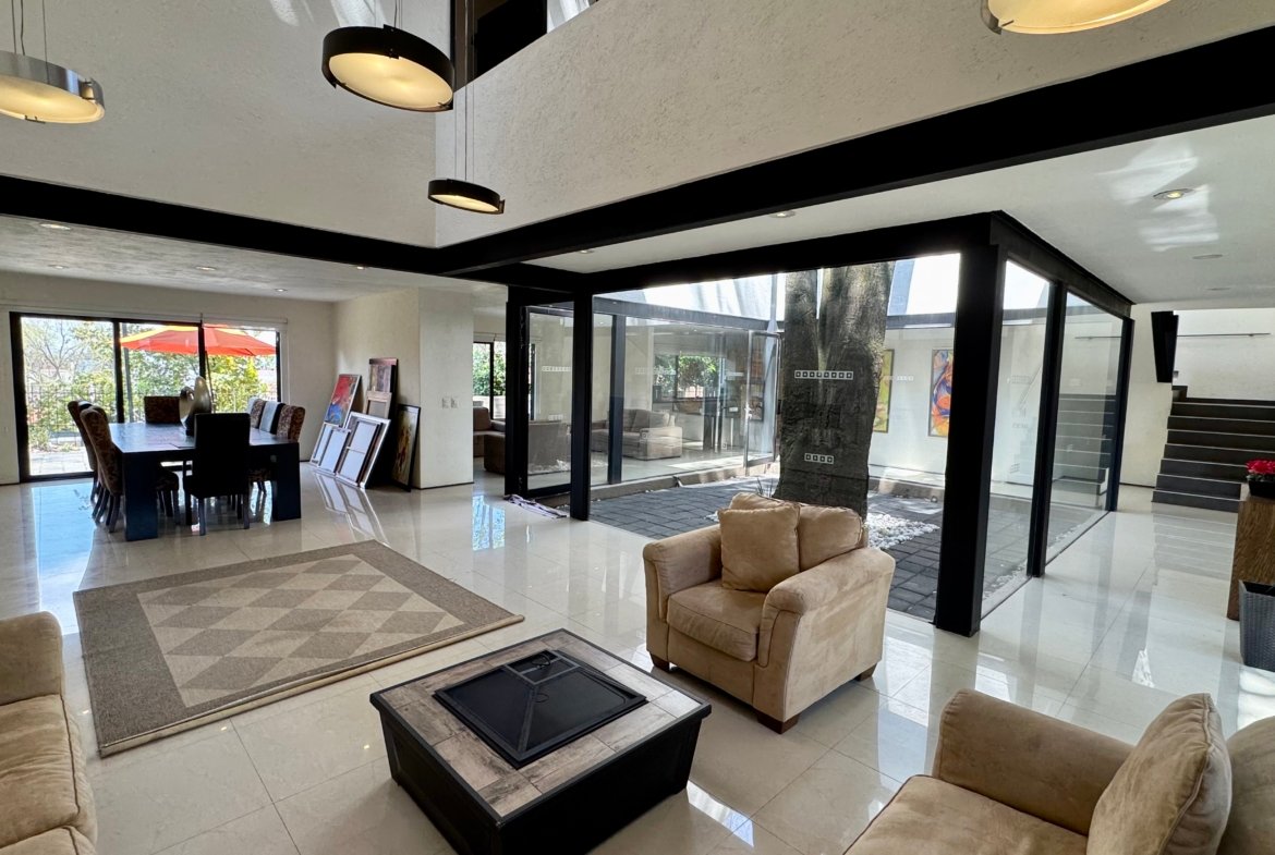 Ubicada dentro del Club de Golf Los Encinos, esta residencia ofrece una experiencia única al integrar la arquitectura con la naturaleza de manera excepcional. Su mayor distintivo son los imponentes encinos maduros ubicados en la entrada, el patio y el corazón de la casa, creando un ambiente de privacidad, frescura y conexión natural difícil de encontrar.
