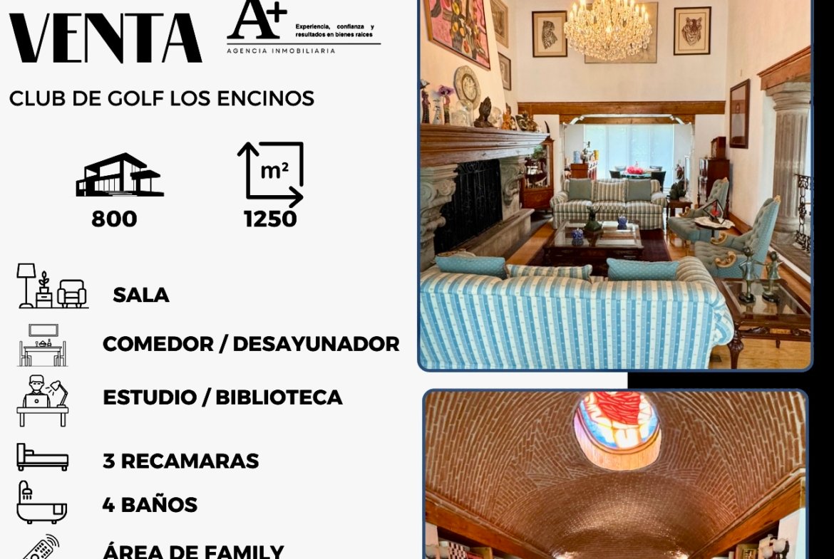 Ubicada dentro de Club de Golf Los Encinos, esta residencia destaca por su carácter arquitectónico clásico, amplitud excepcional y una atmósfera cálida que recuerda a las grandes casas familiares pensadas para disfrutarse durante generaciones.