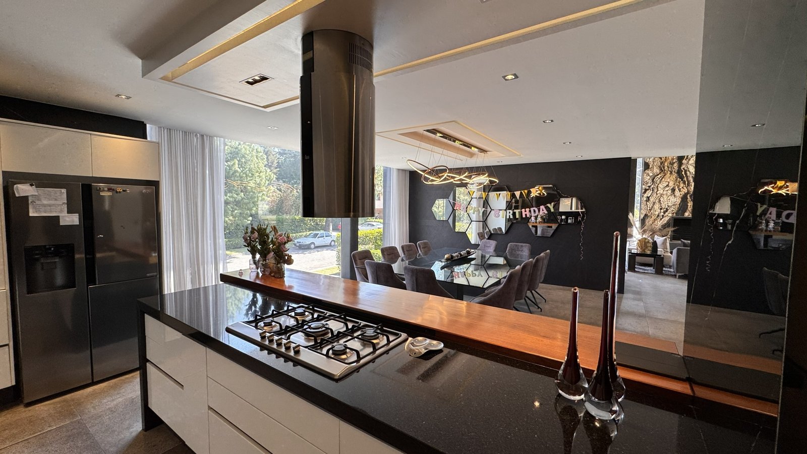 La residencia incorpora acabados de alta gama como pisos y recubrimientos italianos Marazzi, carpintería integral en madera de Tzalam, luminaria italiana Birot y cocina equipada Olimpic, combinando diseño, calidad y durabilidad.