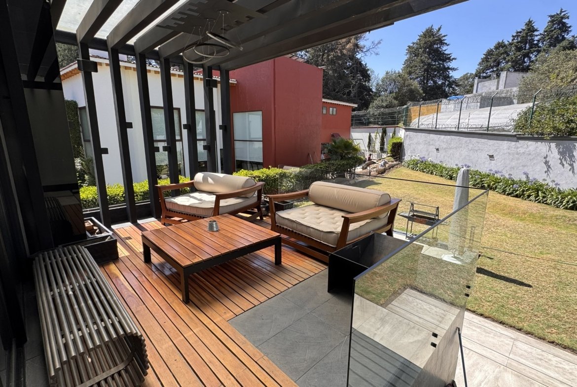 Integra un estudio u oficina privada, ideal para trabajo desde casa, además de un semisótano que funciona como área social independiente con family room, espacio para bar y cava, perfecto para reuniones y entretenimiento.