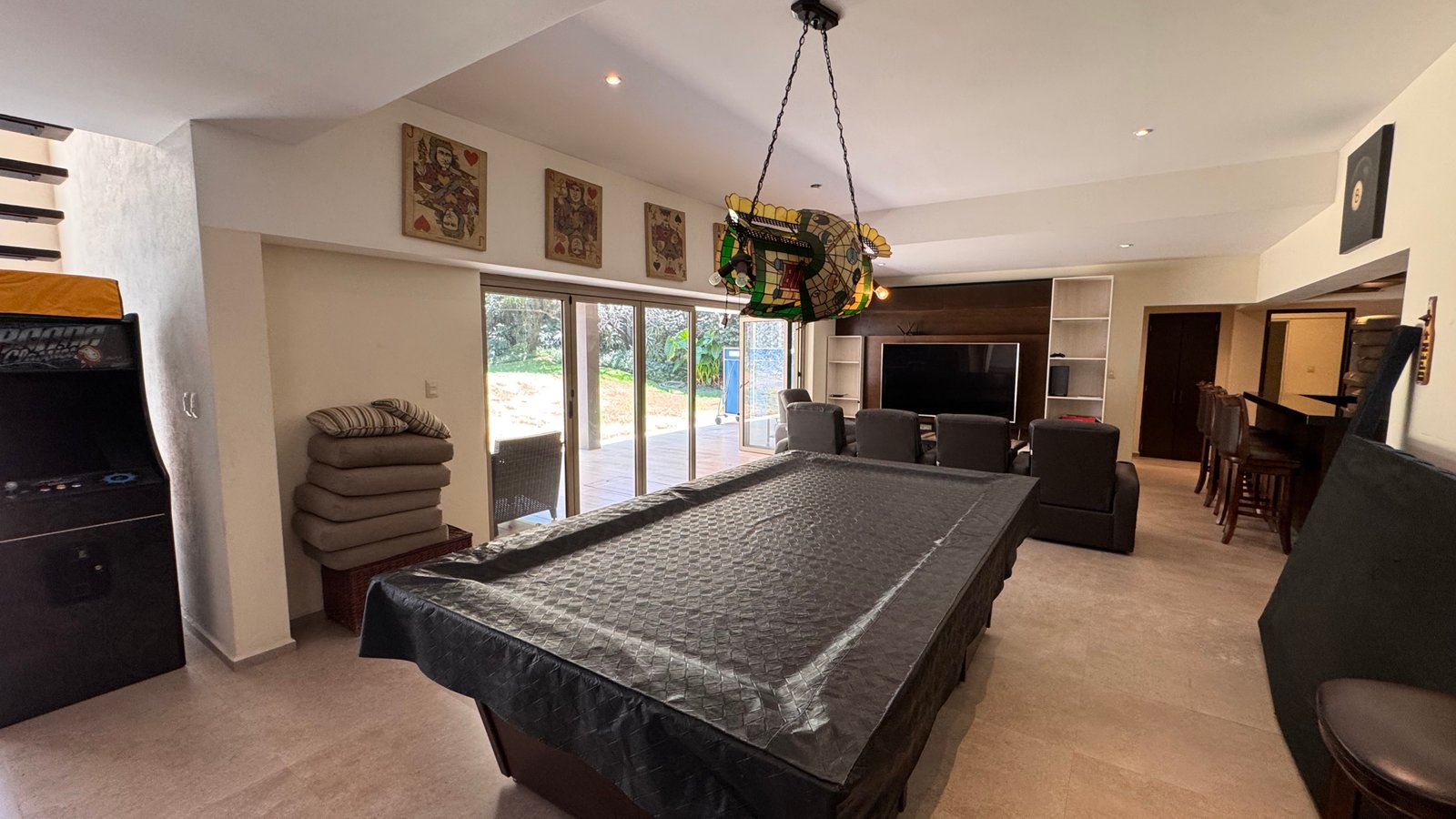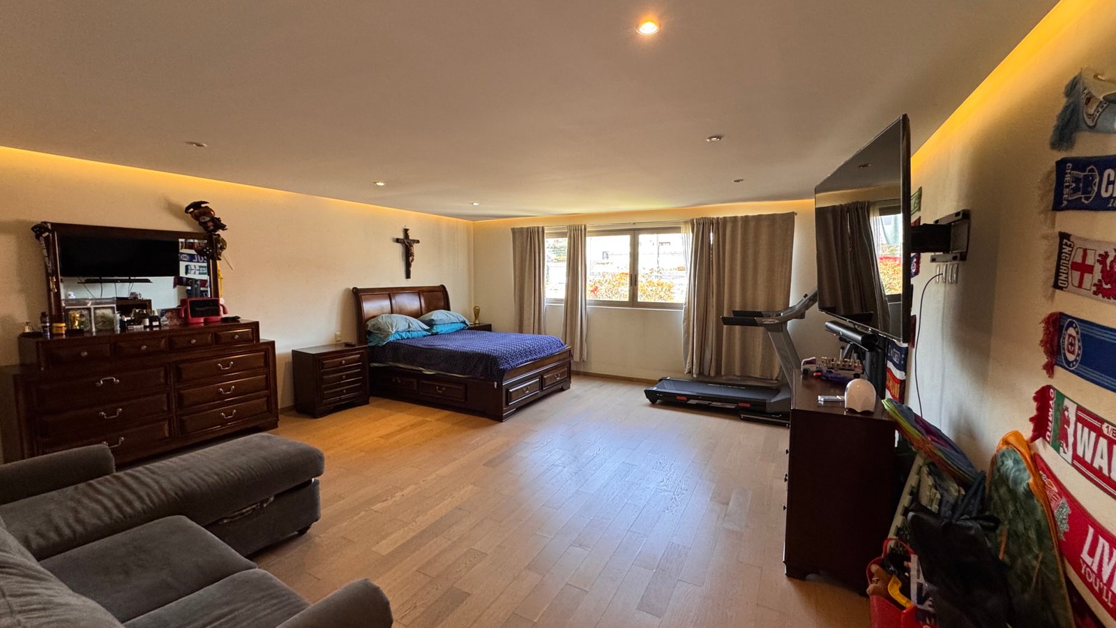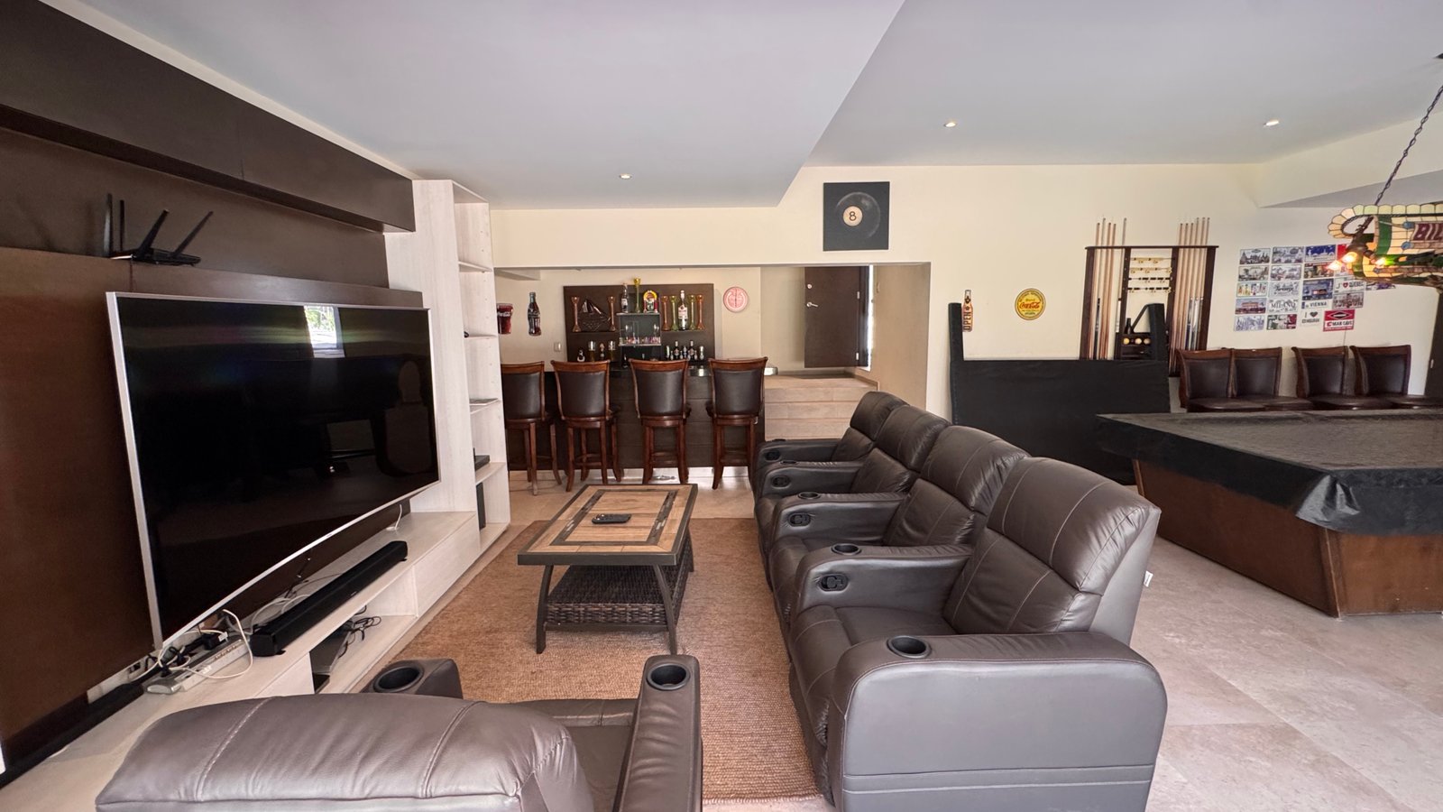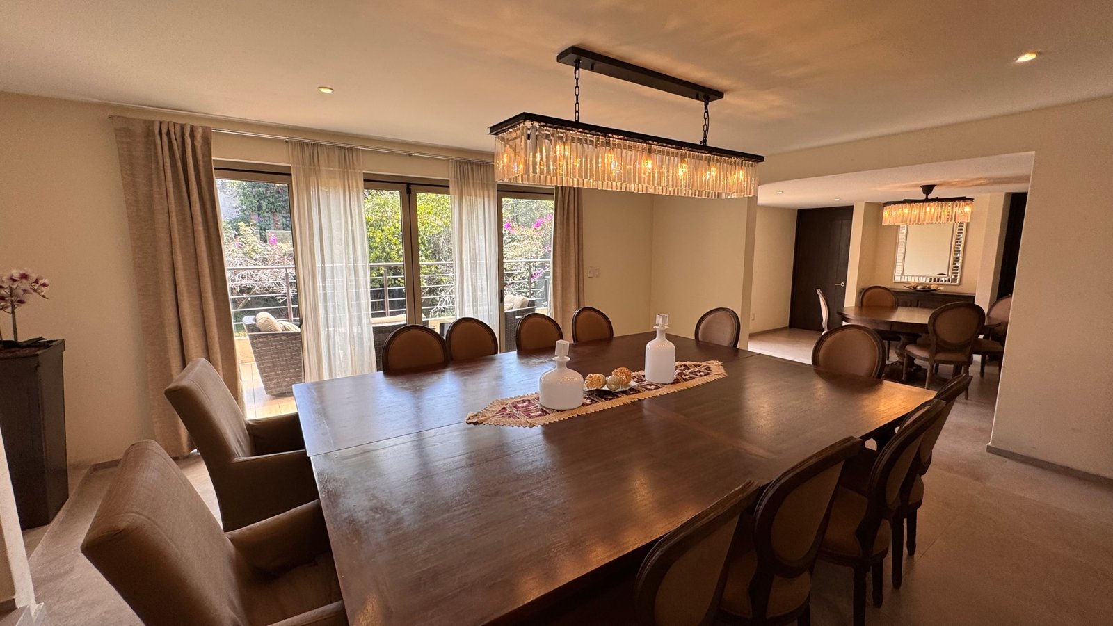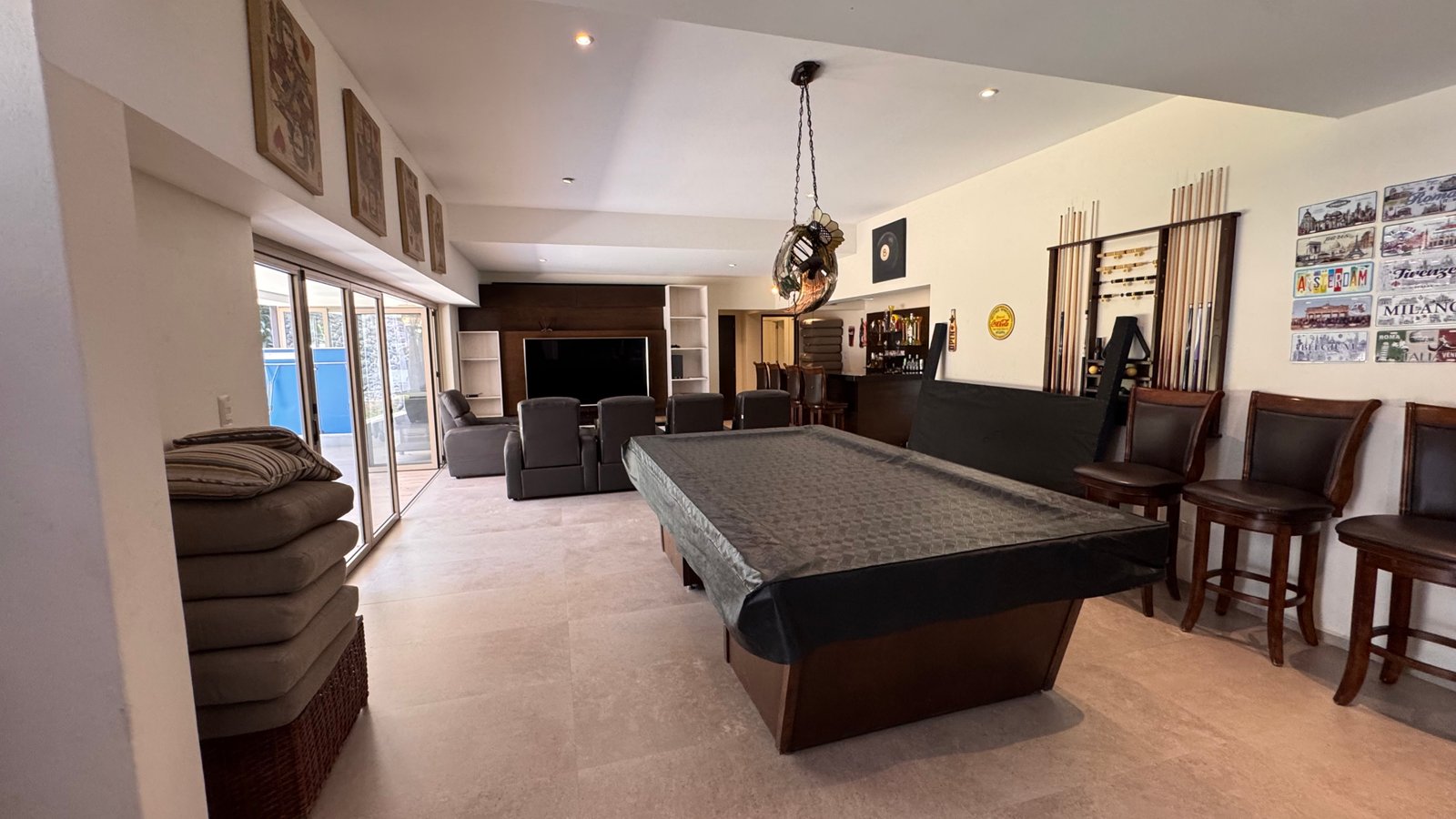 Cuenta con cinco recámaras con vestidor y diez baños, además de dos family rooms que permiten crear distintos ambientes de convivencia. Las áreas sociales integran sala y comedor con gran amplitud, conectando con terrazas y el jardín.