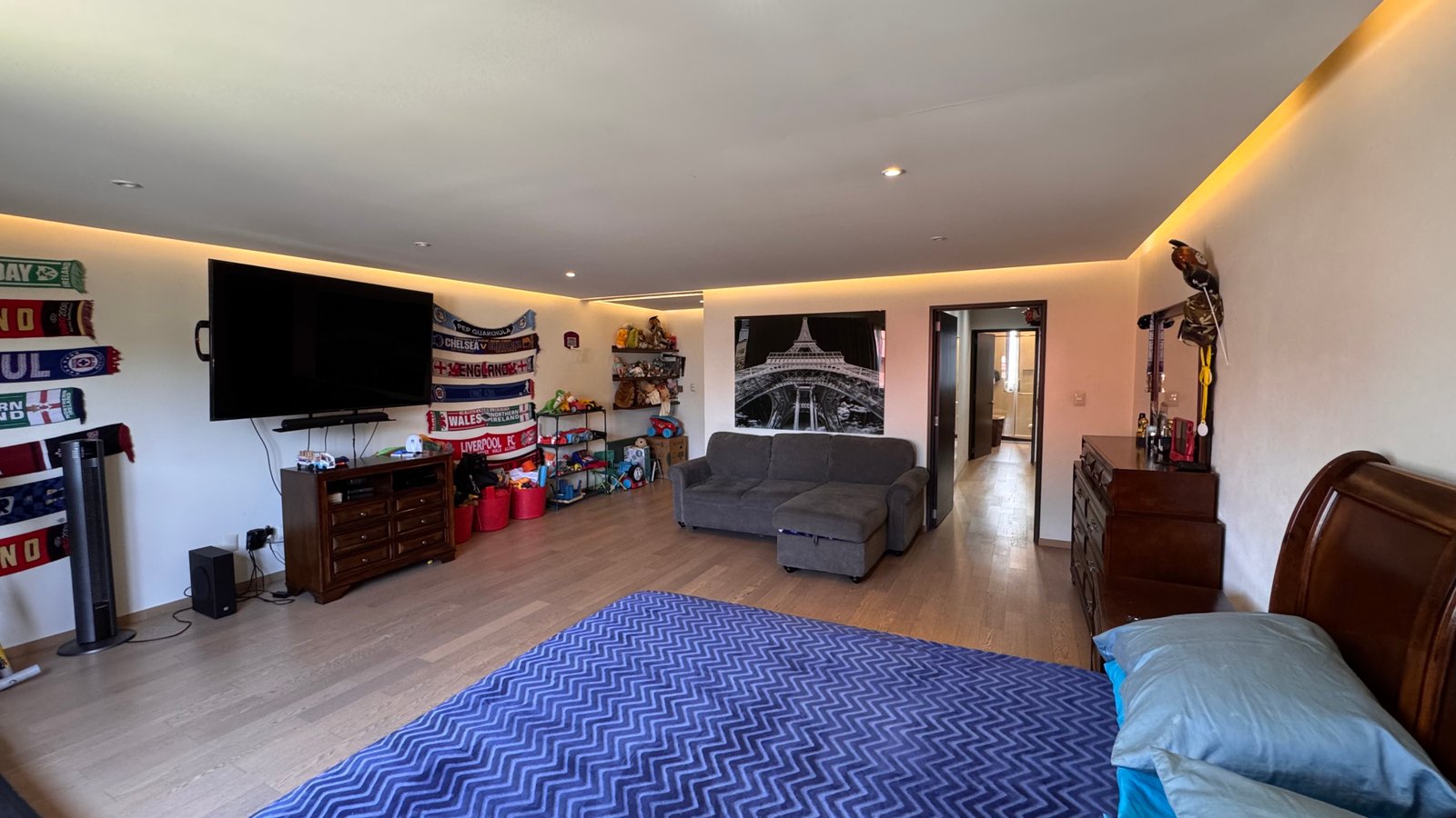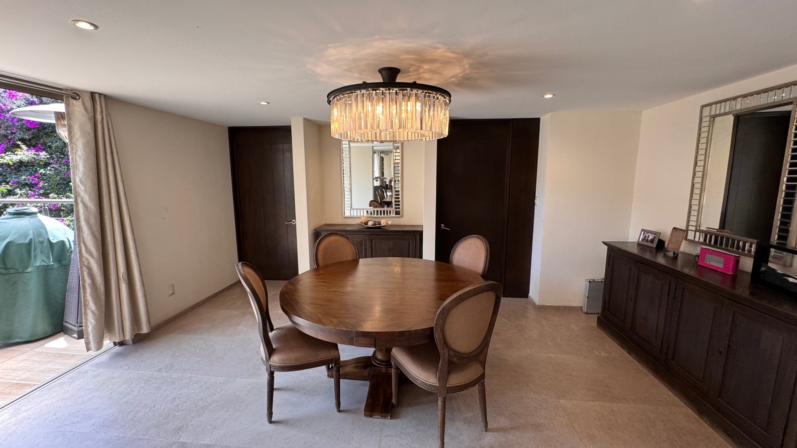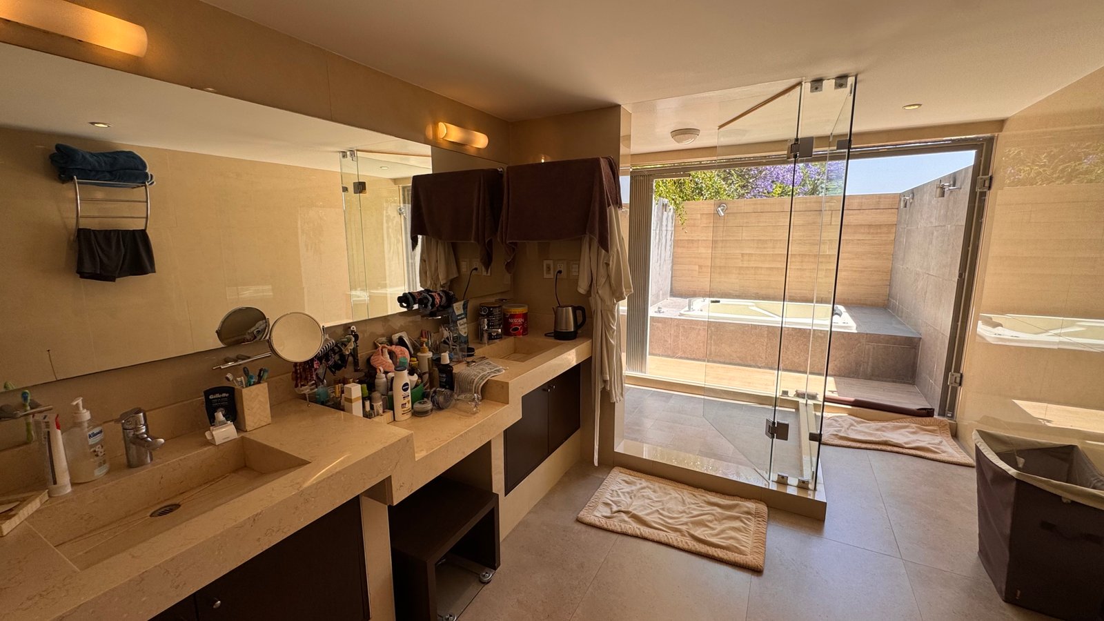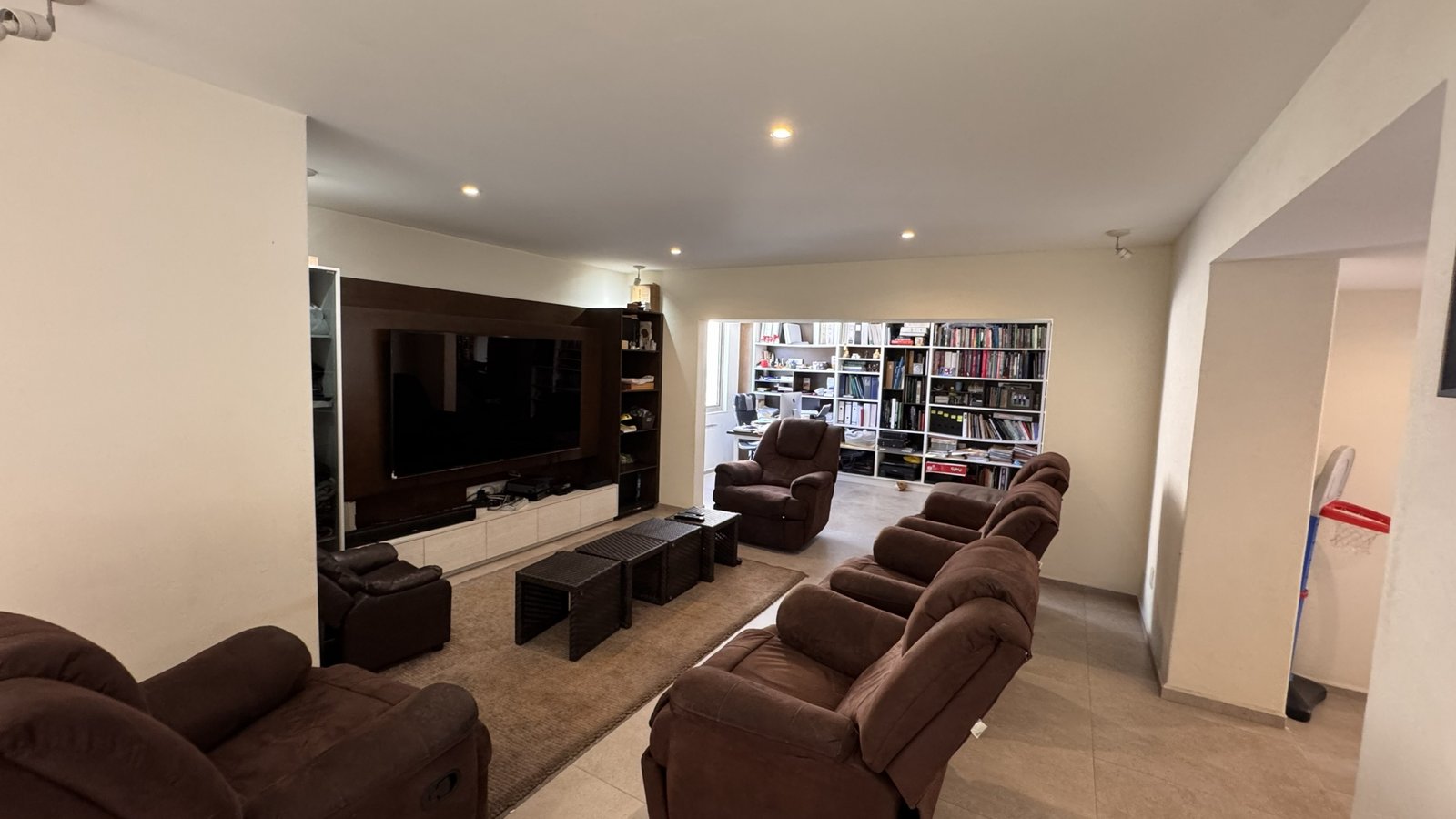 Cuenta con cinco recámaras con vestidor y diez baños, además de dos family rooms que permiten crear distintos ambientes de convivencia. Las áreas sociales integran sala y comedor con gran amplitud, conectando con terrazas y el jardín.