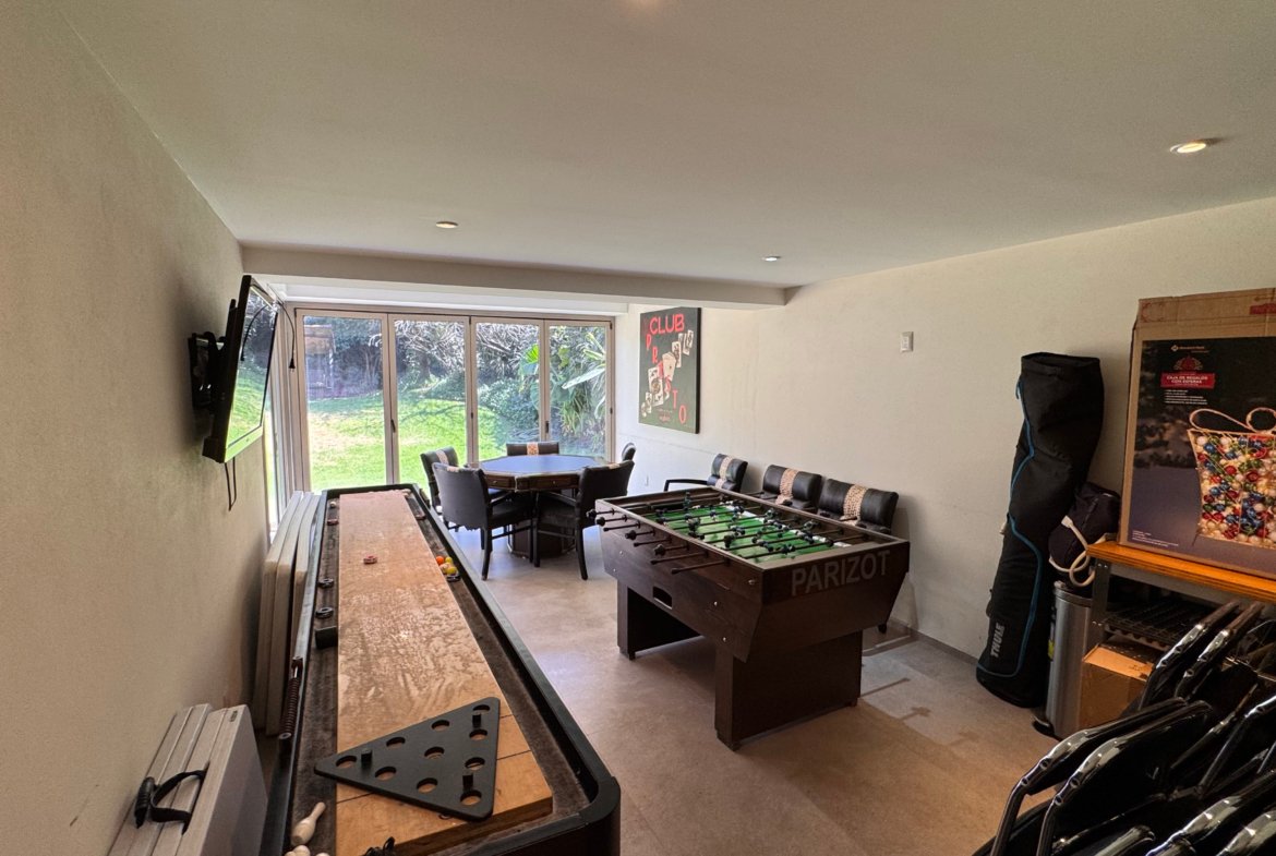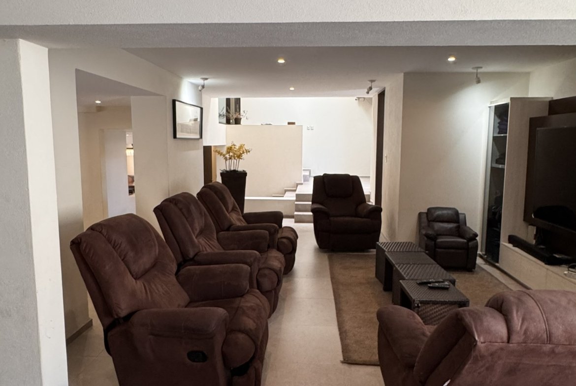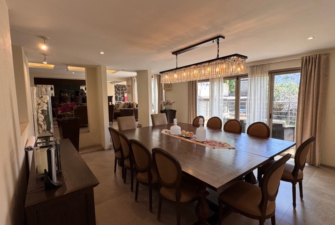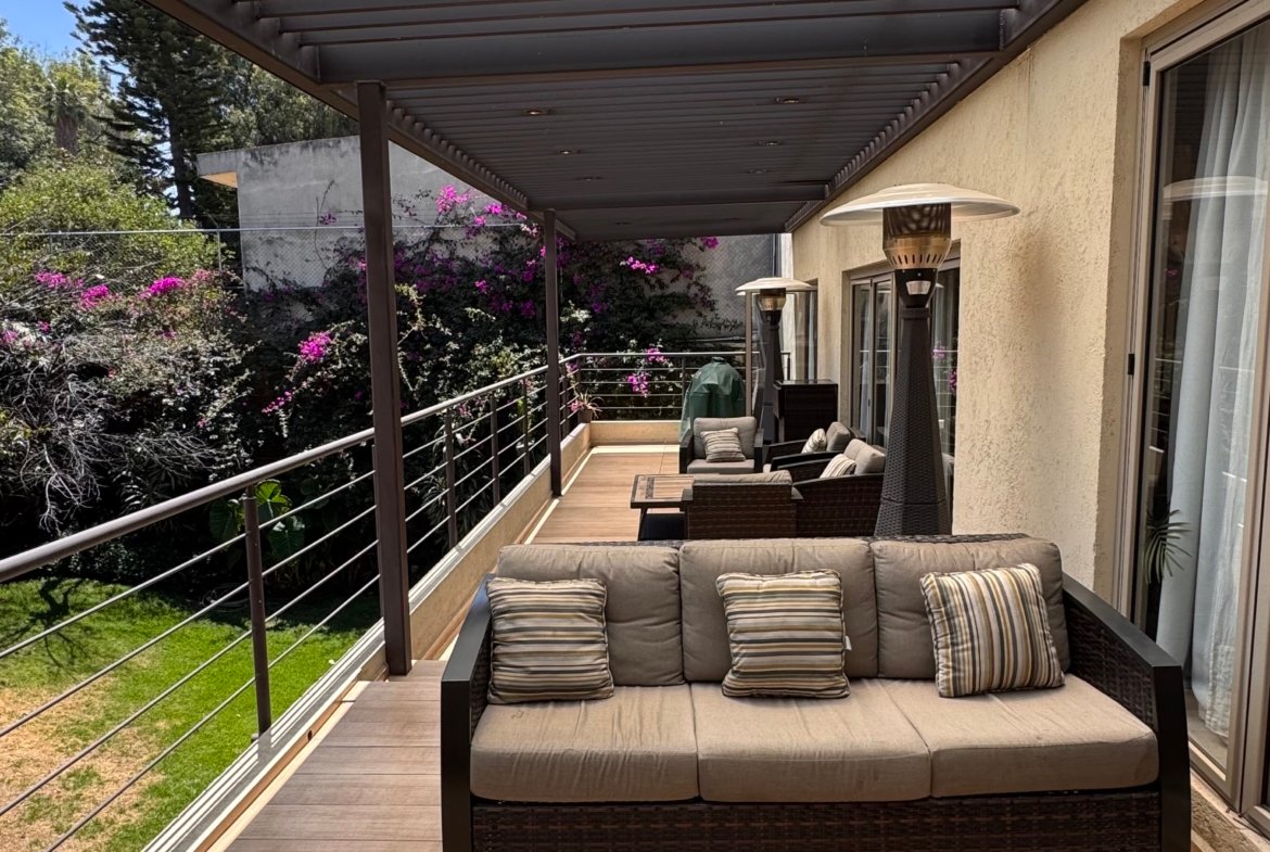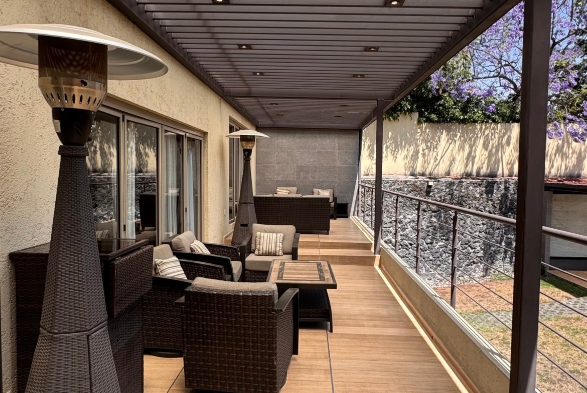 En el exterior dispone de tres terrazas, jardín y área de asador, ideales para reuniones y eventos. Se complementa con seis lugares de estacionamiento, cuarto de servicio y cuatro bodegas, aportando funcionalidad y comodidad.