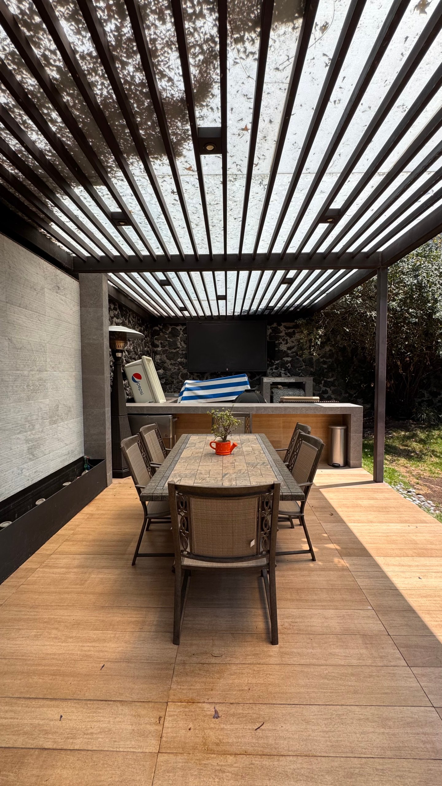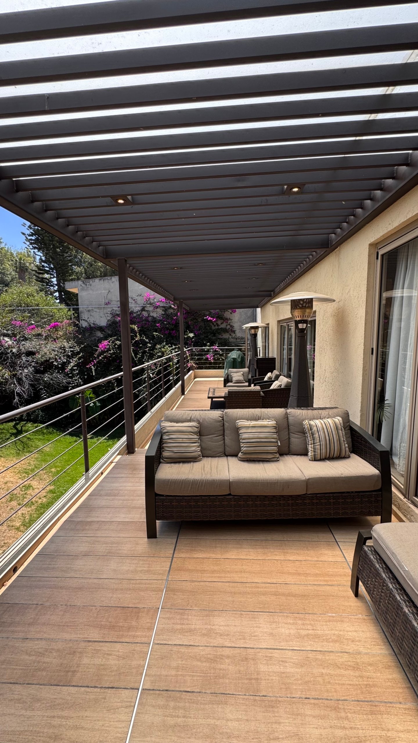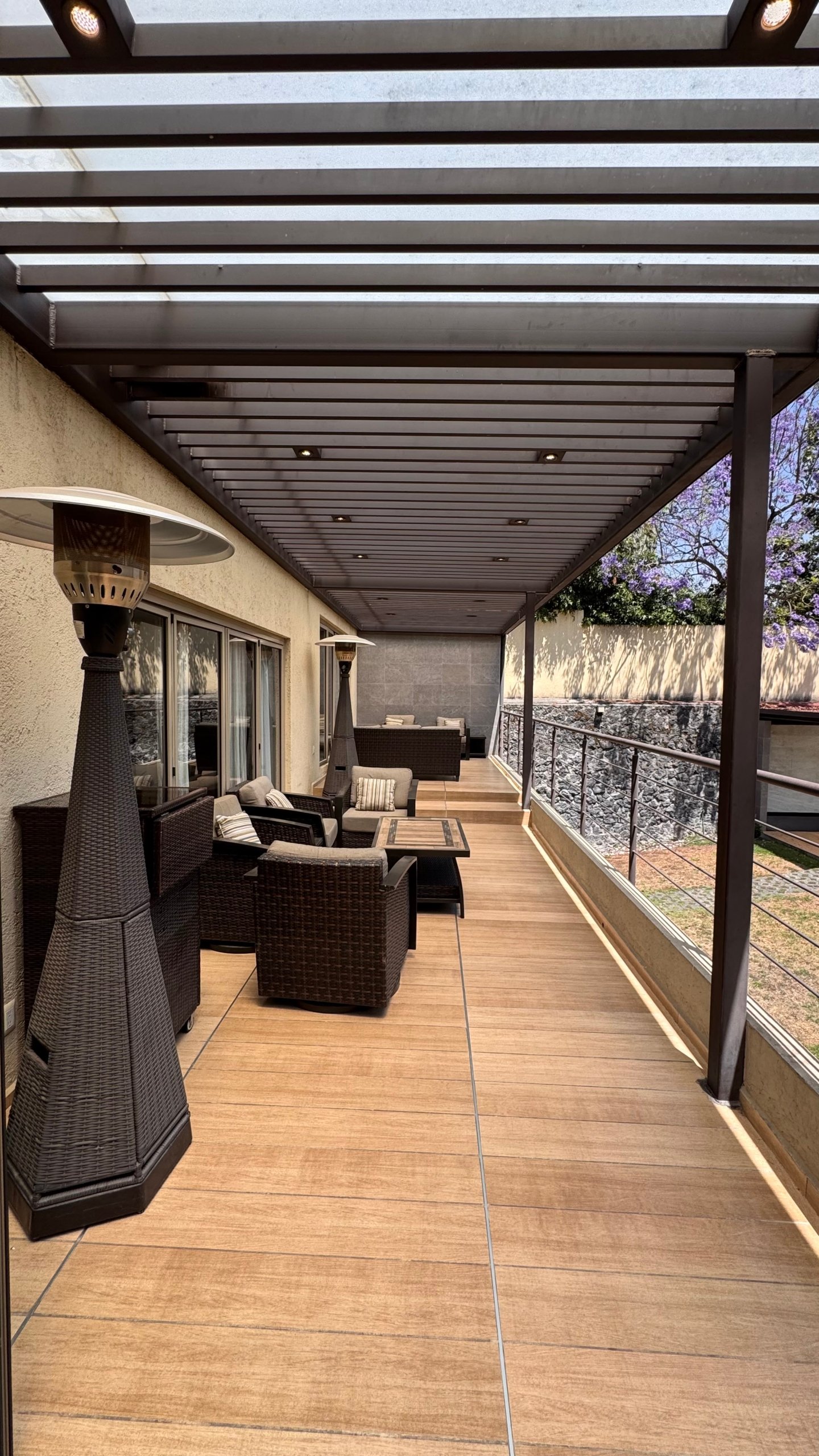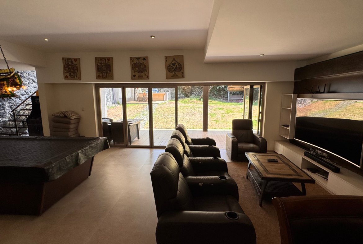En el exterior dispone de tres terrazas, jardín y área de asador, ideales para reuniones y eventos. Se complementa con seis lugares de estacionamiento, cuarto de servicio y cuatro bodegas, aportando funcionalidad y comodidad.
