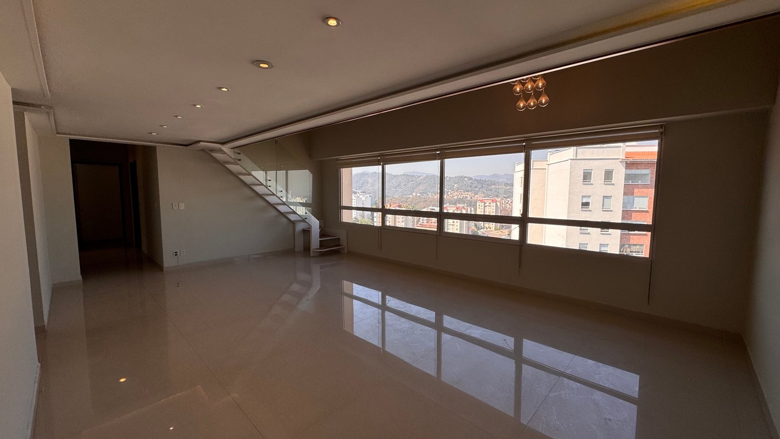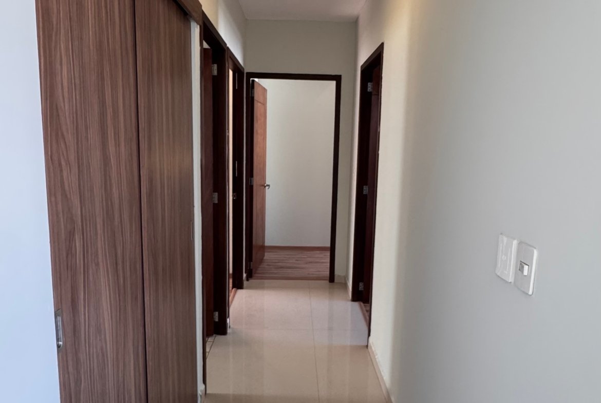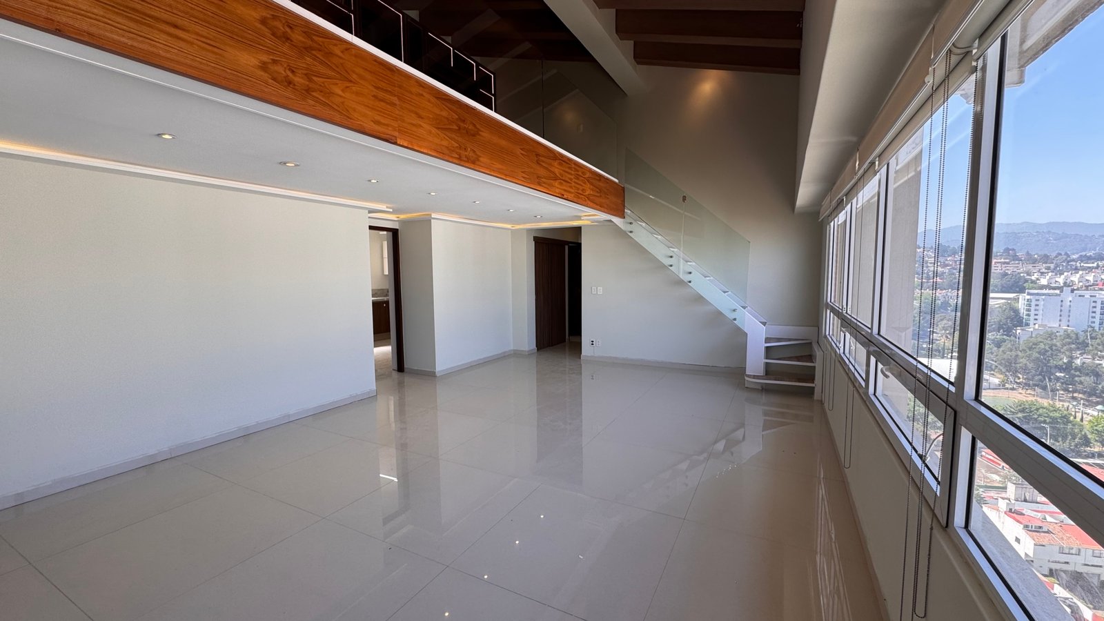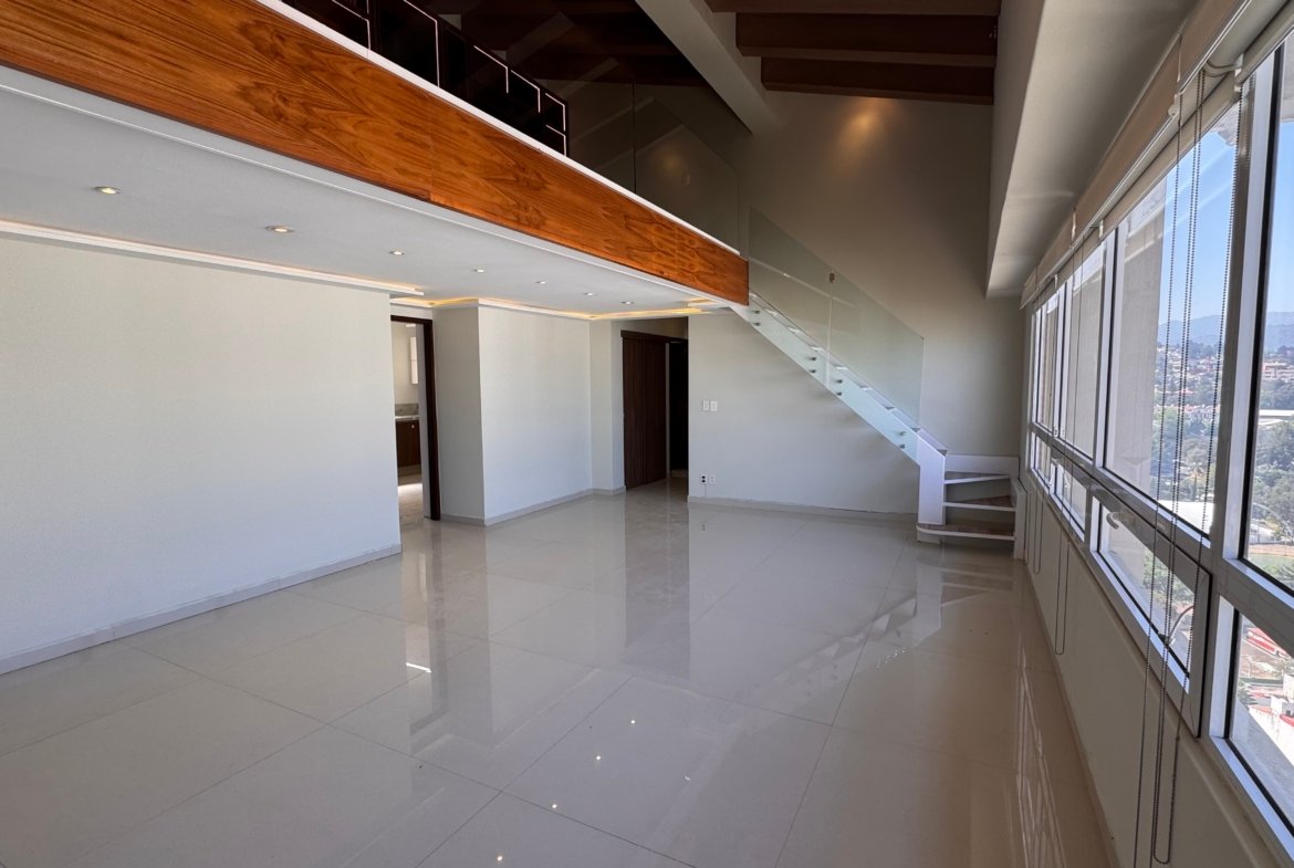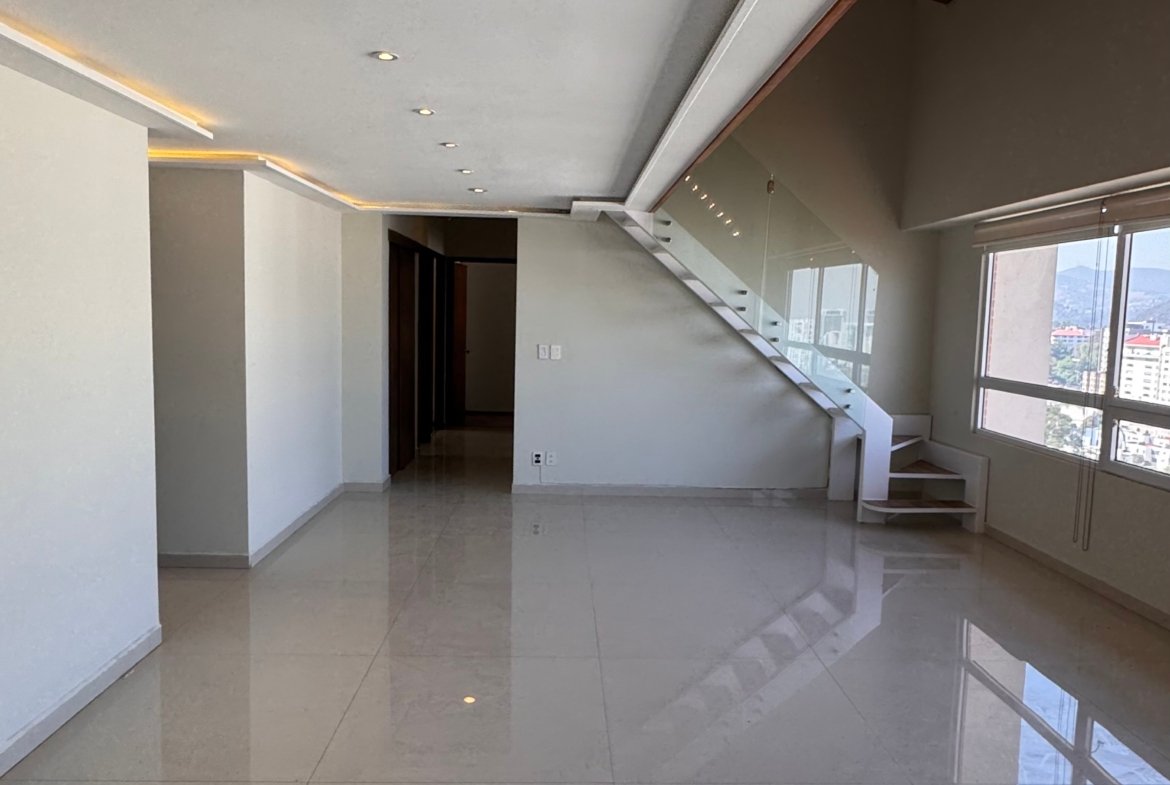 Departamento con espacios amplios y doble altura que aportan luz y sensación de libertad. La estancia integra sala y comedor de forma elegante, mientras la cocina contemporánea ofrece funcionalidad para el día a día.
