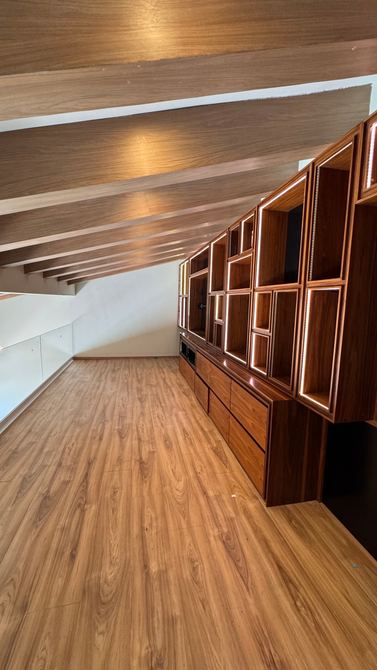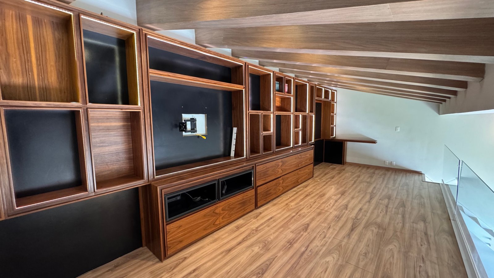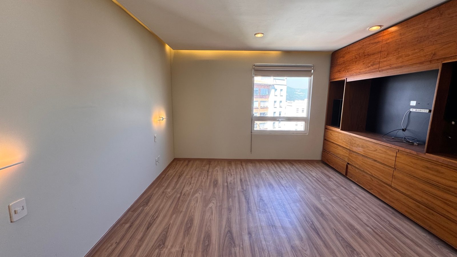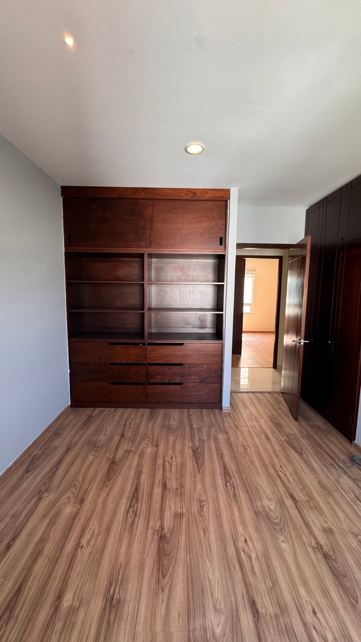 Departamento con espacios amplios y doble altura que aportan luz y sensación de libertad. La estancia integra sala y comedor de forma elegante, mientras la cocina contemporánea ofrece funcionalidad para el día a día.
