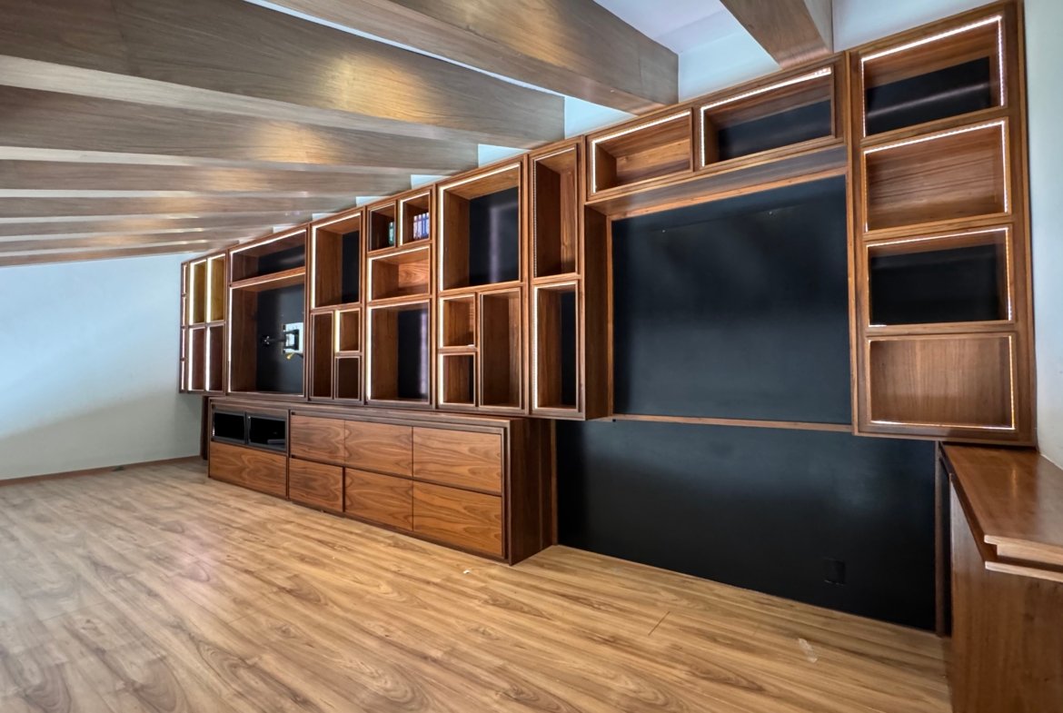 Cuenta con 3 recámaras, 3 baños, family room u oficina, cuarto de servicio y 2 estacionamientos.
