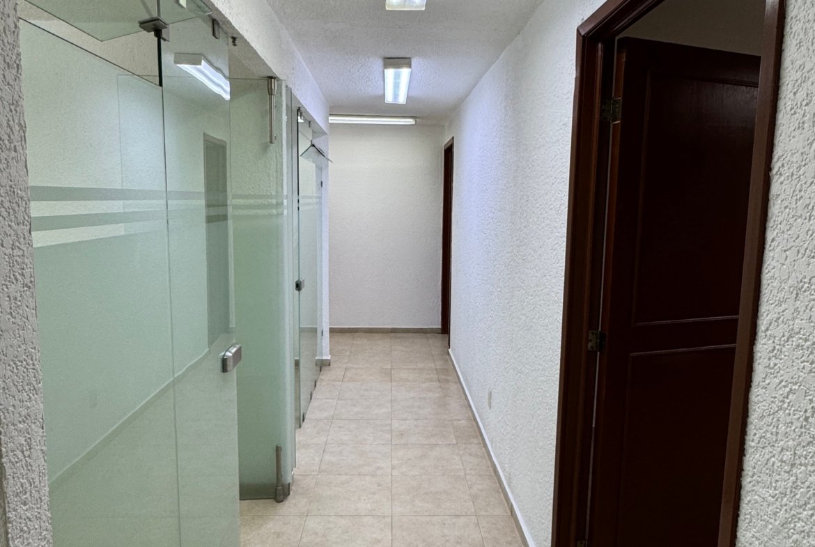 Cuenta con 293 m² distribuidos en diversos espacios funcionales, incluyendo varias áreas privadas que pueden utilizarse como oficinas, un área común de trabajo, oficina principal y sala de juntas, permitiendo una operación cómoda y bien organizada.