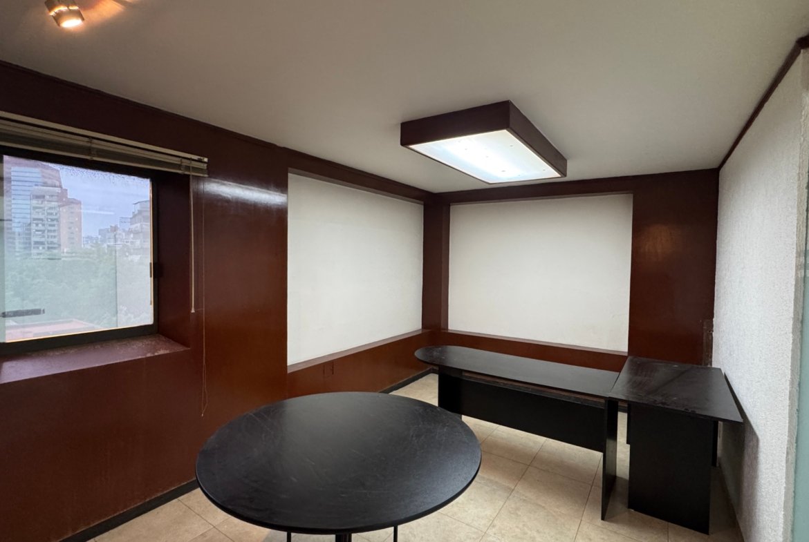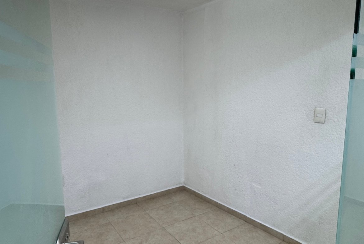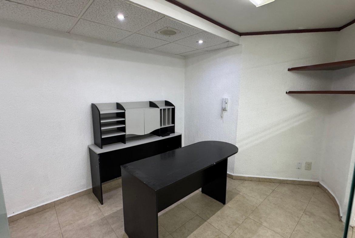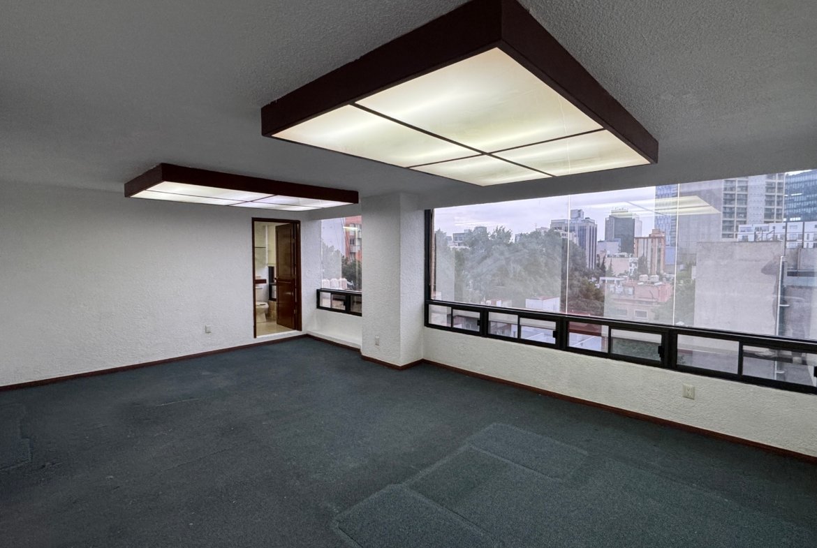 La oficina dispone de un baño privado, además de baños comunales en el edificio para mayor comodidad. Su distribución flexible la hace ideal para adaptar a distintos giros corporativos o creativos.