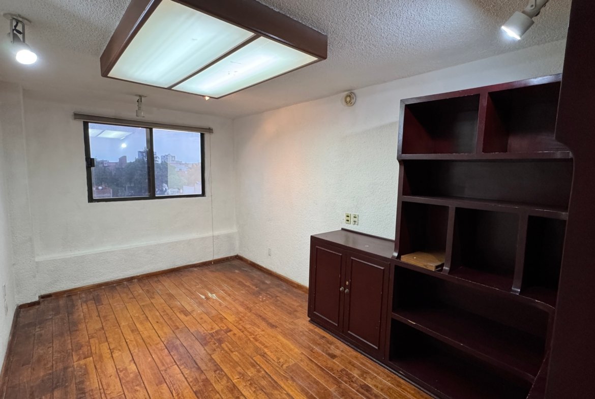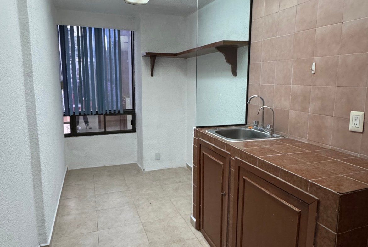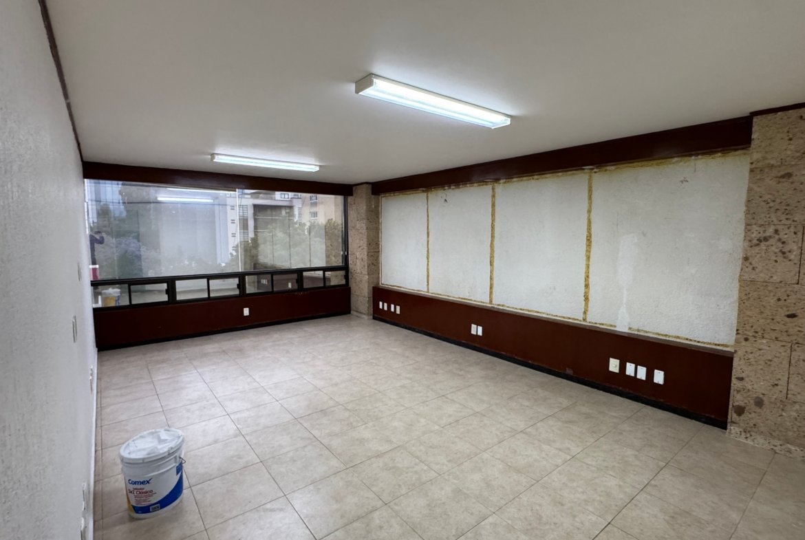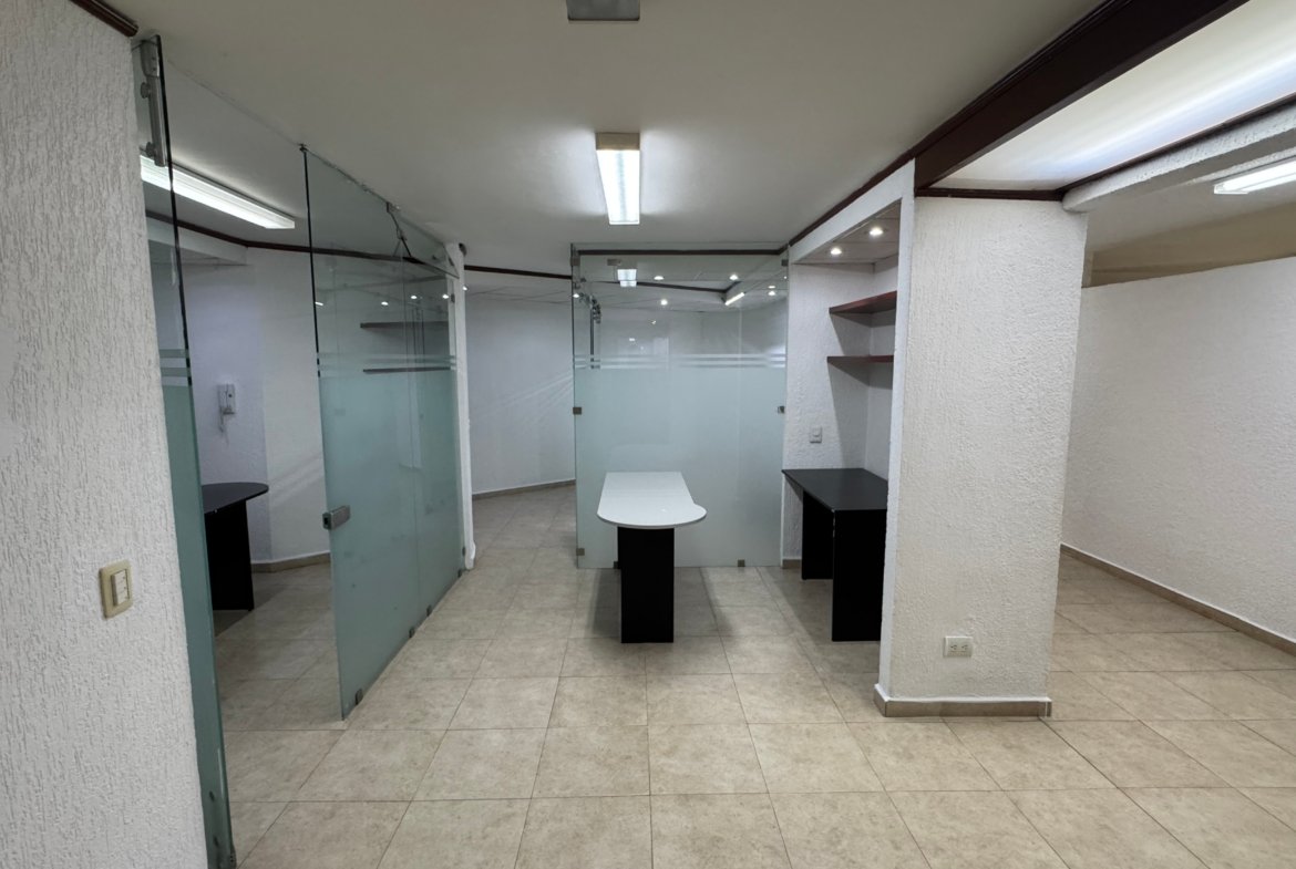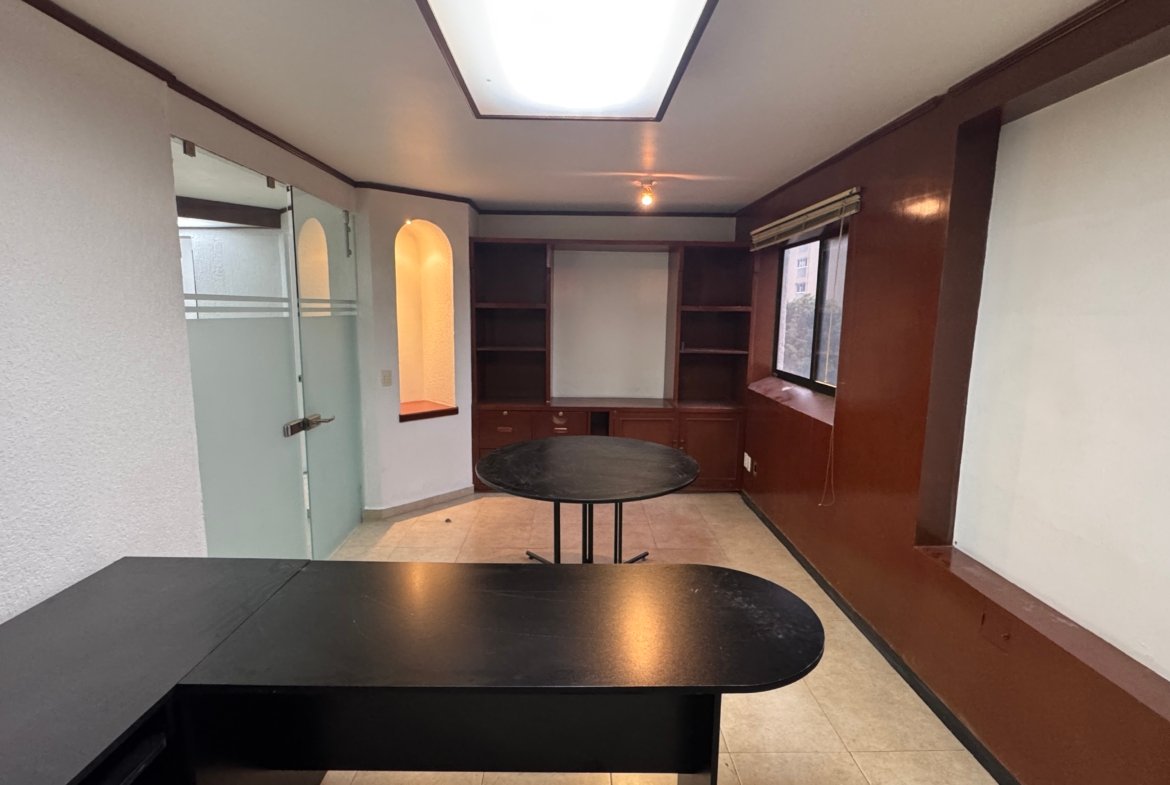 La oficina dispone de un baño privado, además de baños comunales en el edificio para mayor comodidad. Su distribución flexible la hace ideal para adaptar a distintos giros corporativos o creativos.