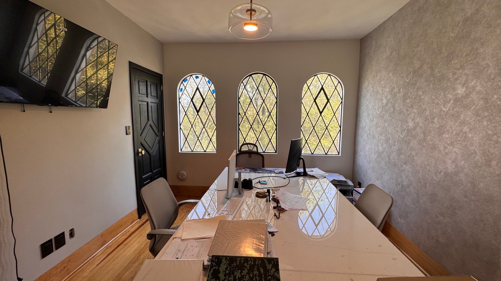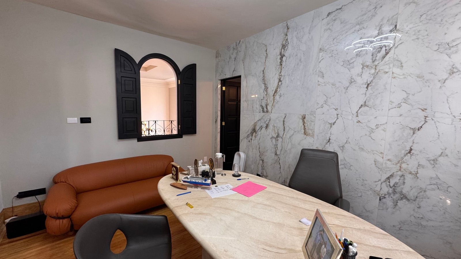 Los espacios interiores destacan por sus acabados finos, detalles arquitectónicos clásicos y una distribución que eleva la experiencia laboral, generando entornos que inspiran confianza tanto en colaboradores como en clientes. Elementos como chimenea decorativa, arcos, iluminación cuidada y sistemas de sonido Bose refuerzan una identidad sofisticada y distintiva.