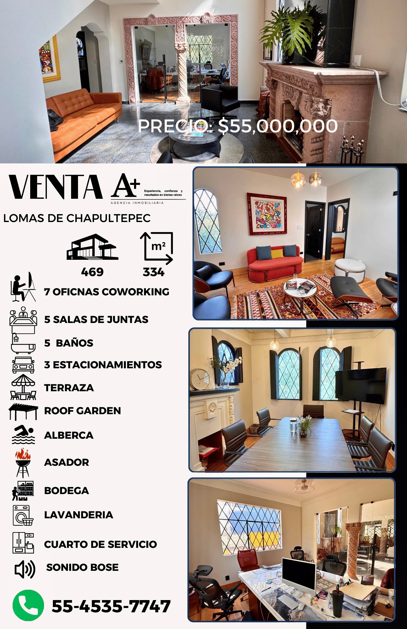 Con 469 m² de terreno y 334 m² de construcción, el inmueble ha sido cuidadosamente adaptado para funcionar como oficinas corporativas de alto nivel, combinando elegancia arquitectónica, funcionalidad y una atmósfera que proyecta exclusividad desde el primer momento. Sus 7 oficinas privadas y 5 salas de juntas permiten una operación eficiente, confidencial y escalable, ideal para firmas legales, financieras, consultoras, family offices o empresas creativas de alto perfil.