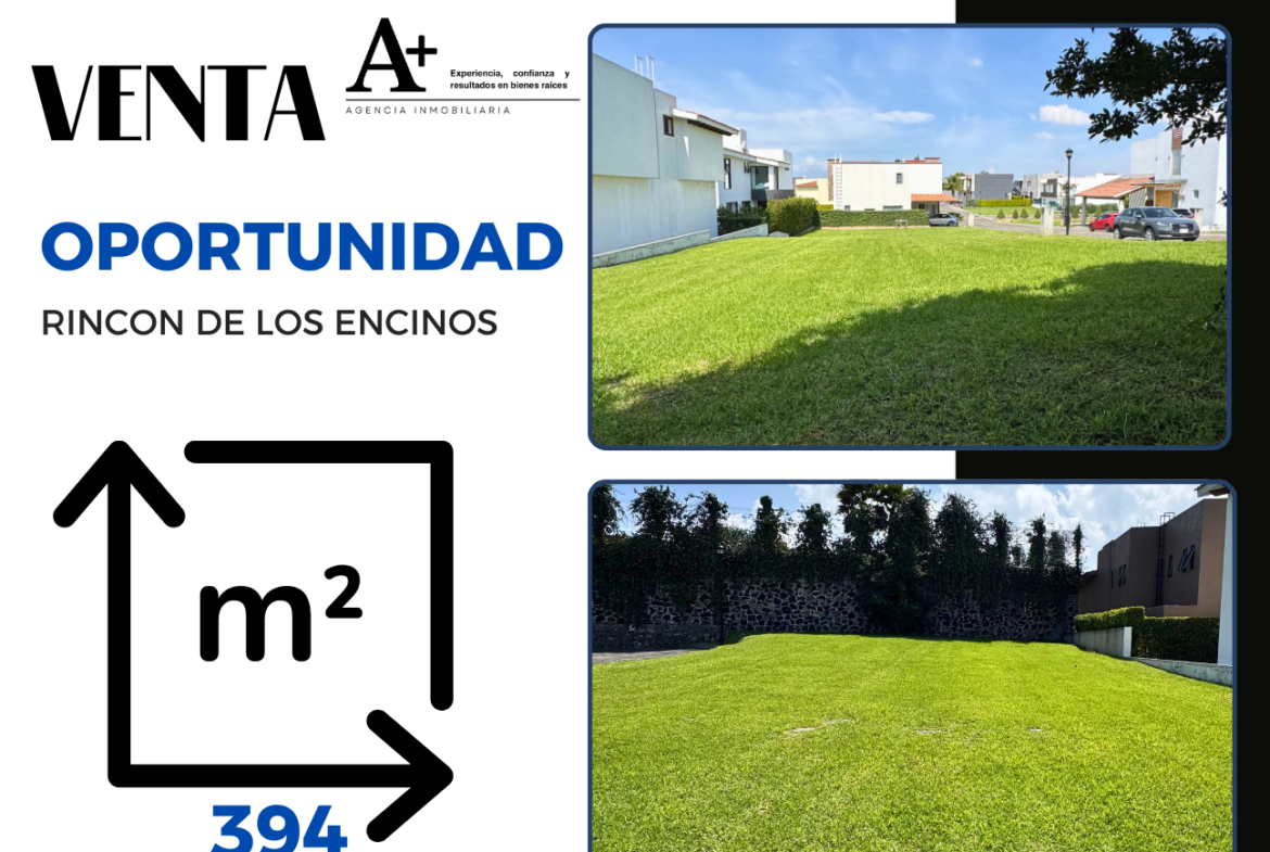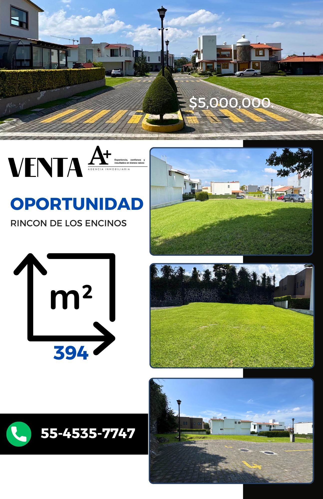 Terreno en venta dentro de Rincón de los Encinos, un fraccionamiento residencial consolidado que destaca por su ambiente familiar, seguridad y agradable entorno urbano.