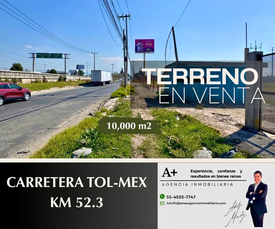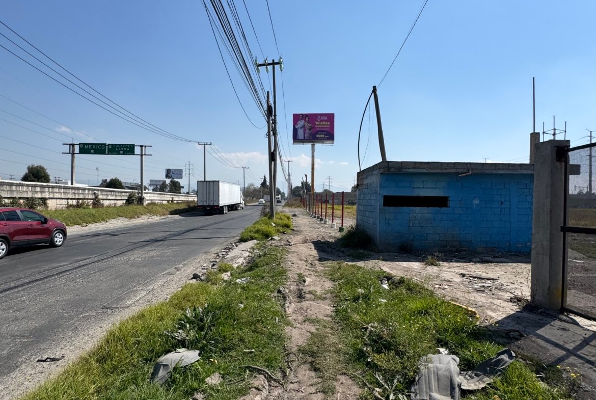 Terreno en venta sobre Carretera Toluca–México, Km 52.3, con ubicación estratégica y alto flujo vehicular, ideal para desarrollo comercial, industrial o de servicios.